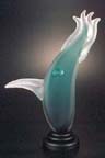 I formulate and melt most of the colored glasses I use in my work, and many pieces are available in a variety of colors. Each piece is free-blown and hot-worked, then frosted by sand-blasting and acid-etching. In the mixed-media work, the glass may be blown, hot-worked solid, or cast, and then frosted. Please note: Due to the handmade nature of this work, colors and sizes may vary.